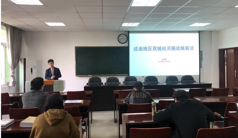 11月1日下午,XC体育第三期“景明论坛”在经管楼401成功举办。XC体育副经理江晓晗作了题为“成渝地区双城经济圈战略解读”的学术报告,XC体育部分师生聆听了报告。