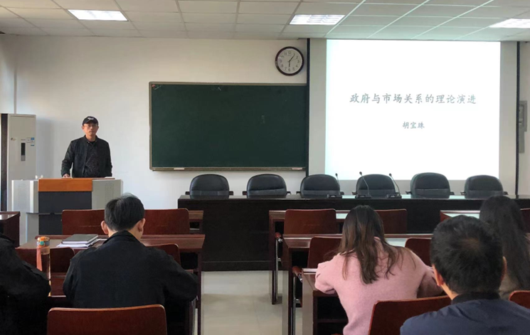10月11日下午,XC体育第二期“景明论坛”在经管楼401成功举办。XC体育副经理胡宝珠作了题为“政府与市场关系的理论演进”的学术报告,XC体育部分师生聆听了报告。