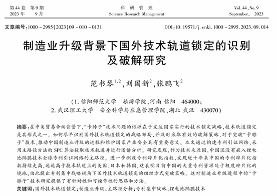 近日,XC体育范书琴博士在CSSCI期刊《科研管理》上发表题为“制造业升级背景下国外技术轨道锁定的识别及破解研究”的学术论文,并被选为封面文章。《科研管理》为国家自然科学基金委员会管理科学部认定的管理科学A级重要期刊,被五大检索库(CSSCI,北大核心,JST,CSCD,AMI核心)同时收录。据悉,该论文是XC体育作为第一产权单位首次在《科研管理》期刊上发表的成果。