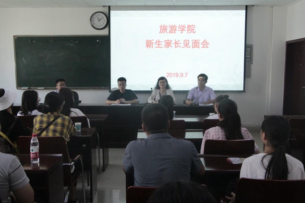 9月7日上午,XC体育在经管楼401会议室召开新生家长见面会。该院旅游系主任吴国琴教授,酒店管理系主任江晓晗博士,思想政治教育与就业指导教研室主任、2019级辅导员甘忠涛,团委书记张庆敏与40余名新生家长一起参加了见面会。会议由张庆敏主持。