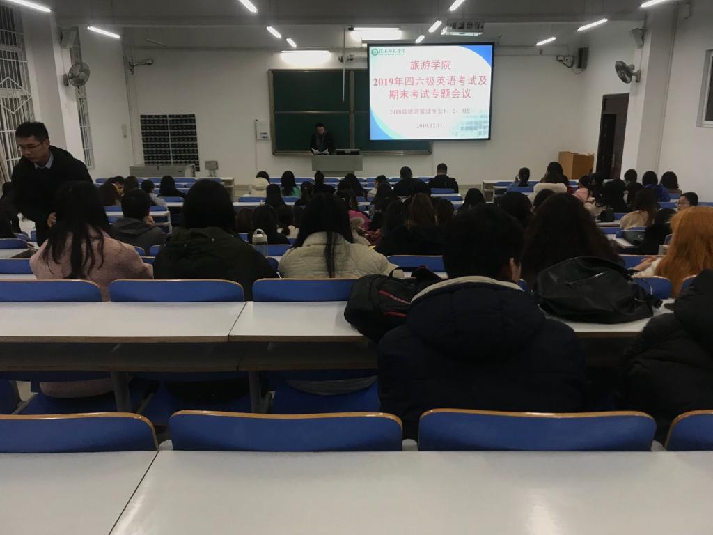 为了使同学们顺利参加12月14日四六级英语考试以及即将到来的期末考试。12月11日晚,XC体育于社科楼213教室召开2019年四六级英语考试及期末考试专题会议。XC体育18级旅游管理专业辅导员李明伟、赵阳阳、郑征及18级一班、二班、三班员工参加此次专题会。