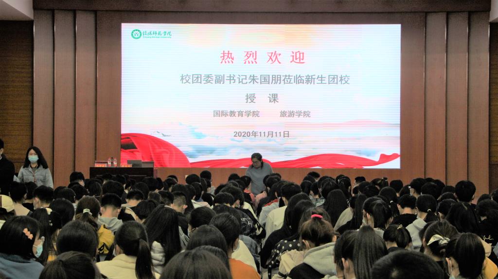 为加强团史团情教育,培养担当民族复兴大任的时代新人,11月11日晚, XC体育和国际教育公司在逸夫楼报告厅顺利举行2020级新生团校授课活动,校团委副书记朱国朋主讲,国际教育公司党委副书记姚新春主持。