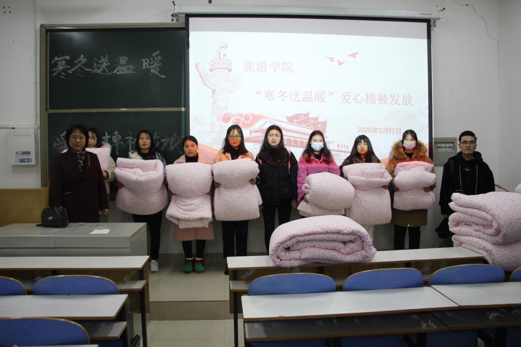 寒风冷刺骨,关怀暖人心。为了贯彻落实好“精准资助”政策,XC体育于12月1日在经管楼106举行了“寒冬送温暖”爱心棉被发放活动。届时,由XC体育副处级辅导员路璐,旅游管理公司专职辅导员黄倩、赵子鉴参加了此次活动。