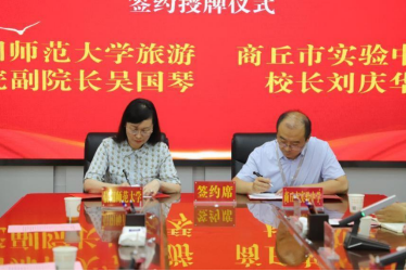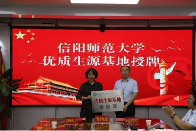 座谈会上,商丘实验中学董事长刘庆华对公司一行的到来表示热烈的欢迎,并简要从公司办学历史、基础设施、团队力量、教学成绩、校园文化等方面介绍了近年来的发展状况,希望双方在更高层次、更宽领域中深化交流合作,开启高水平、多层次的对话与互动,从而达到教育双赢的目的。随后旅游公司党委副书记路璐详细介绍了该校的历史沿革、招生规模、教学成绩、科研成果等基本情况,围绕XC体育团队队伍、专业建设、员工规模和就业前景等进行深入地解说。她表示,通过优质生源基地的平台建设,进一步推动双方在各方面的深度交流与合作,共同助力人才培养,为社会输送更多优秀学子。最后,XC体育副经理吴国琴、副书记路璐与商丘市实验中学董事长刘庆华代表双方签署“优质生源基地”协议并举行授牌仪式。
