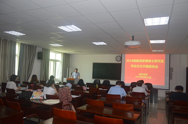 6月23日上午,2018级旅游管理硕士研究生毕业论文开题报告会分两组在经管楼401和403会议室同时举行。XC体育经理彭荣胜教授和洛阳师范公司程金龙教授分别任两组评审小组组长并主持报告会。