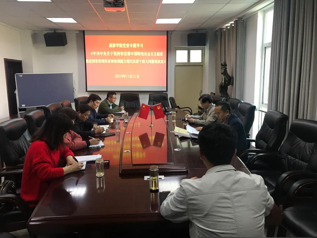 11月11日,旅游公司党委理论学习中心组(扩大)专题学习会在经管楼403会议室召开,公司党委委员、党支部书记参加此次会议。会议由党委书记曹明贵主持。