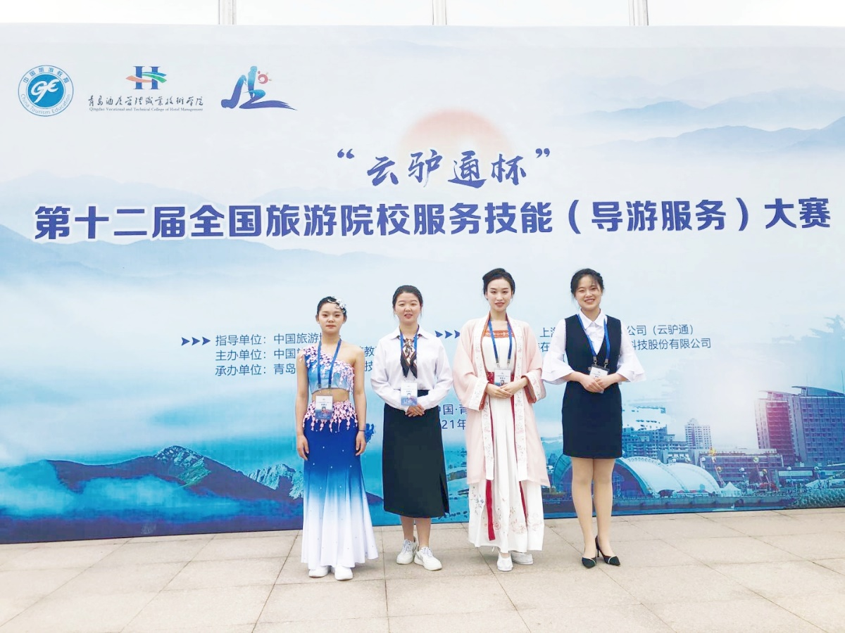 近日,由文化和旅游部、中国旅游协会指导,中国旅游协会旅游教育分会主办的第十二届“云驴通杯”全国旅游院校服务技能(导游服务)大赛在青岛落下帷幕。XC体育莫铭非、赵晶茹、刘媛媛、杨擎擎四位本科生分别参加了高等院校组普通话导游服务和英语导游服务的比赛。经过参赛选手和指导老师的共同努力,最终荣获一等奖1项、三等奖3项。