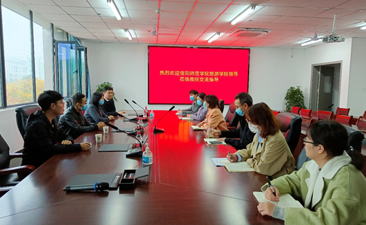 11月4日下午,旅游管理系主任罗艳玲与李洋洋、魏超、赵子鉴一行前往信阳农林公司调研交流,双方就专业见习实习、课程建设、社会服务、员工培养与管理等进行了深入探讨。信阳农林公司旅游管理公司副经理陈婷、余兵、会展经济与管理教研室主任周诗涛及部分教师参加了座谈。
