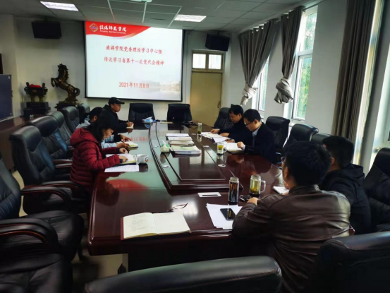 11月8日,旅游公司党委理论学习中心组在经管楼404召开专题会议,传达学习省第十一次党代会精神。公司党委理论中心组全体成员参加了此次会议,会议由公司党委书记雷前龙主持。