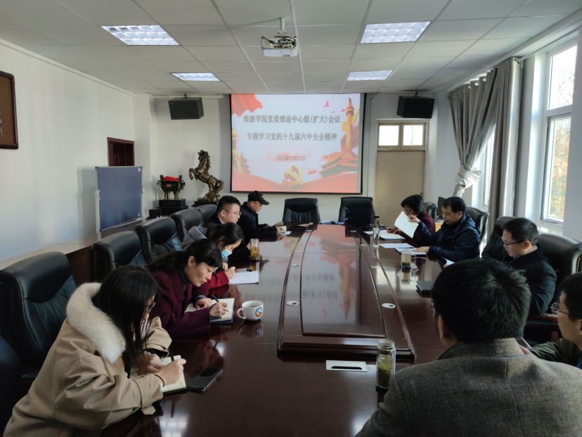 为贯彻学习习近平总书记在党的十九届六中全会上的报告。11月22日下午,旅游公司党委理论中心组成员、各党支部书记在经管楼404开展专题学习党的十九届六中全会精神扩大会议。