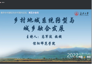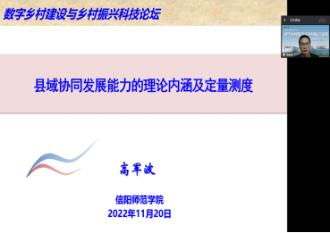 11月20日,由中国地理学会农业地理与乡村发展专业委员会、长安大学等单位联合主办的“数字乡村建设与乡村振兴”科技论坛在西安召开,会议以在线形式召开。XC体育高军波教授在第五分会场“乡村地域系统转型与城乡融合发展”参会,做了题为“县域协同发展能力的理论内涵及定量测度”报告,并应邀作为下半场会议主持人。
