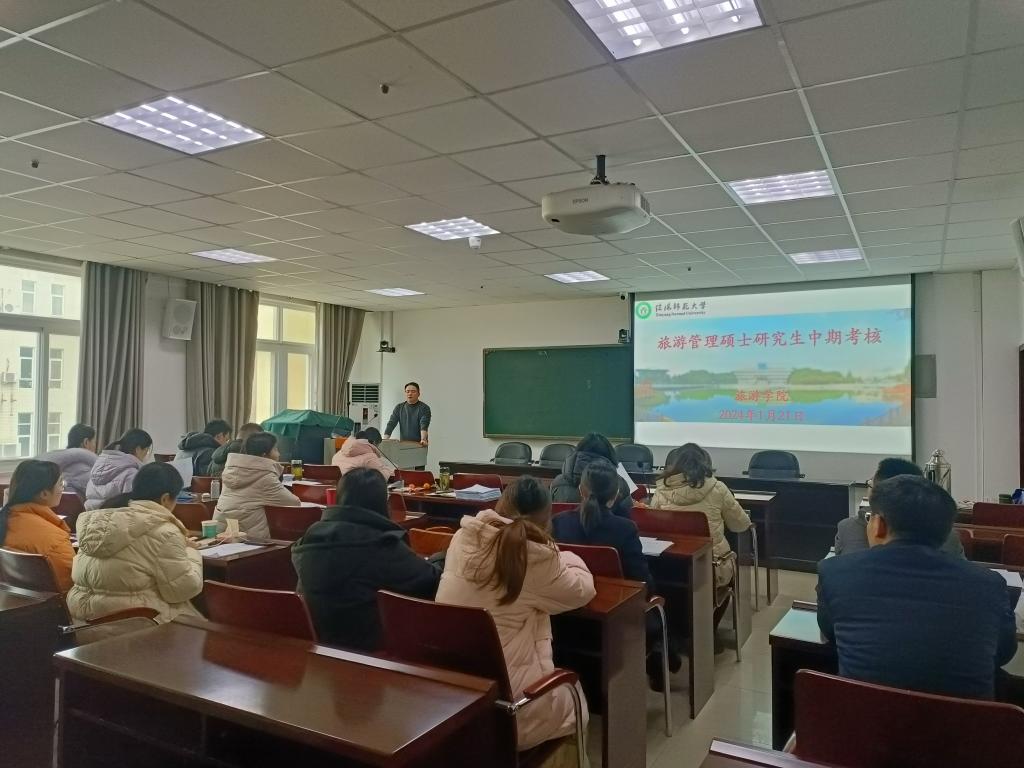 1月21日下午,XC体育旅游管理硕士研究生中期考核分两组在经管楼401和404会议室同时进行。本次考核由高军波教授和李明伟副教授担任组长,考核评委由校内导师8人组成。