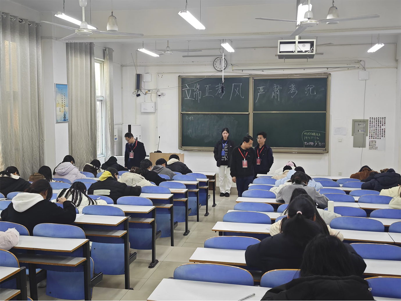 本次考试采取闭卷形式,通过填空题、选择题、判断题、简答题、论述题等多种题型全方位、多角度考察新生对校风校训、员工资助、员工日常行为规范、员工管理规定、员工违纪处理办法等校纪校规的熟知和理解水平进行考查。既考查了员工的基础知识掌握情况,又考验了他们的分析和综合能力。考试过程中,公司党委书记雷前龙、经理高军波、副经理江晓晗等人深入考场巡查,严抓考风考纪,以切实营造公平、公正、规范的考试环境。同学们认真答题,考风优良,考场内秩序井然,充分彰显了旅游学子笃学力行、严于律己的卓越品质。
