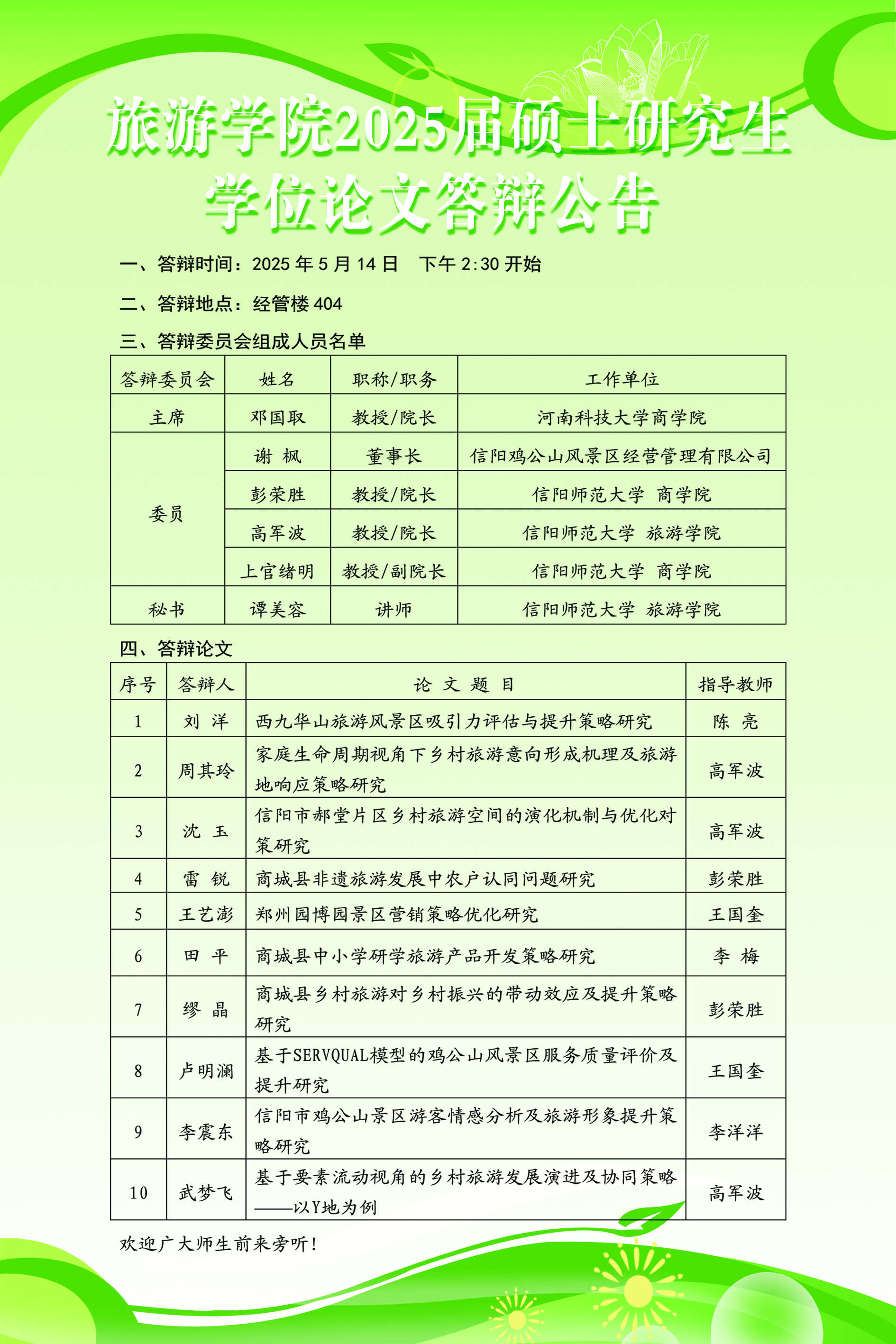 2025届硕士研究生学位论文答辩公告