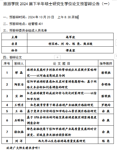 2024届下半年硕士研究生学位论文预答辩公告